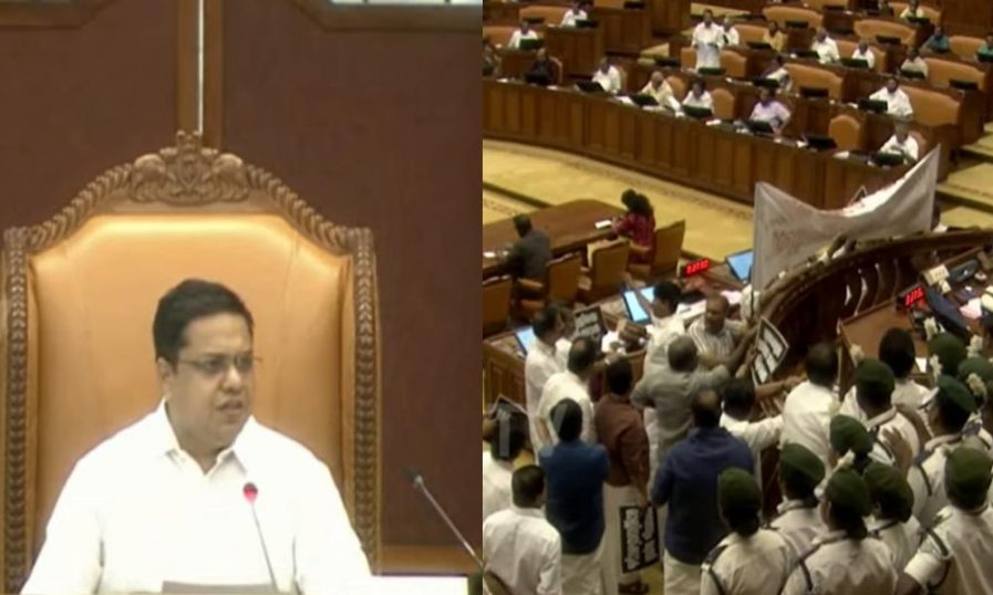 പ്ലക്കാര്ഡുകള് ഉയര്ത്തി അന്ധനെപോലെയാക്കി, മുഖം മറച്ചത് ജനാധിപത്യവിരുദ്ധം; പ്രതിപക്ഷ പ്രതിഷേധത്തിനെതിരെ സ്പീക്കര്