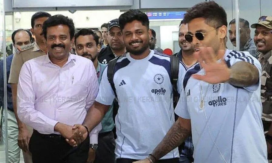 വിമാനത്താവളത്തിൽനിന്ന് പുറത്തേക്ക് വന്ന സഞ്ജുവിനായി ആരാധകർ ആർപ്പു വിളിച്ചു. ഇതോടെ ഇന്ത്യൻ ക്യാപ്റ്റൻ സൂര്യകുമാർ യാദവ് ‘വഴിയൊരുക്കിയാണ്’ സഞ്ജുവിനെ സ്വീകരിച്ചത്.