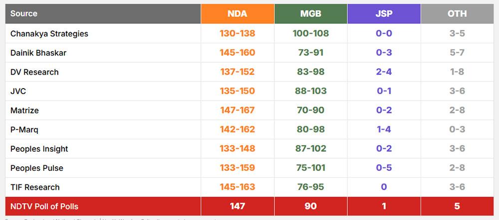 രണ്ടാം ഘട്ട വോട്ടെടുപ്പ് അവസാനിച്ചു; ബിഹാറില് എന് ഡി എ വീണ്ടും അധികാരം പിടിക്കുമെന്ന് എക്സിറ്റ് പോള് ഫലങ്ങള്