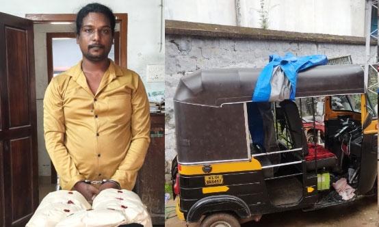 ഓട്ടോറിക്ഷയുടെ വിവിധ ഭാഗങ്ങളില് പൊതികളിലാക്കിയായിരുന്നു കഞ്ചാവ്