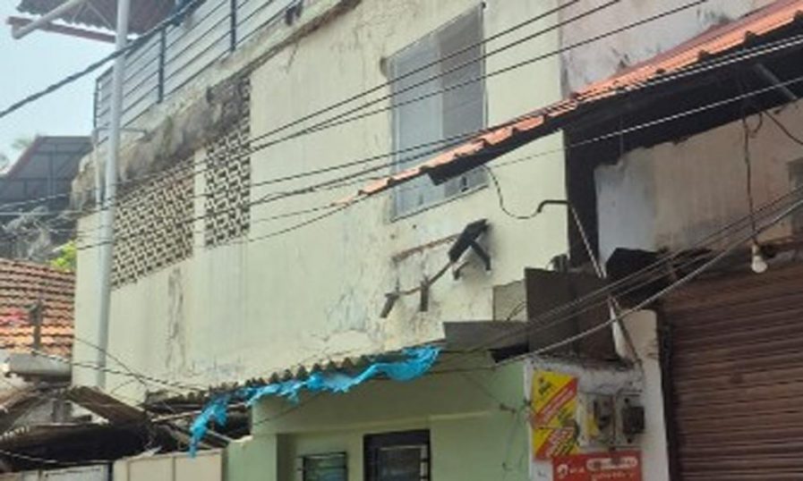 വലിയങ്ങാടിയിലെ പ്രധാന വ്യാപാര കേന്ദ്രത്തിന്റെ അരികിലുള്ള വാടി ലൈനിലാണ് അപകടമുണ്ടയത്. കഴിഞ്ഞ ദിവസം വലിയങ്ങാടിയില് കെട്ടിടത്തിന്റെ സ്ലാബ് അടര്ന്നുവീണ് നാലുപേര് മരിച്ചിരുന്നു.