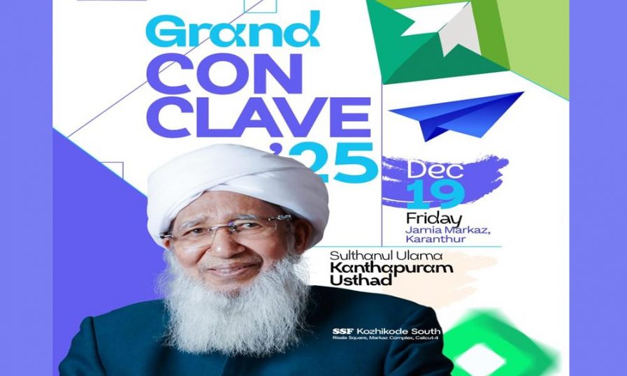 കോഴിക്കോട്|കേരള മുസ്ലിം ജമാഅത്ത് കേരള യാത്രയുടെ മുന്നോടിയായി എസ്എസ്എഫ് കോഴിക്കോട് സൗത്ത് ജില്ലാ കമ്മിറ്റി സംഘടിപ്പിക്കുന്ന ഗ്രാൻഡ് കോൺക്ലേവ് ഇന്ന്. കാരന്തൂർ ജാമിഅ മർകസിൽ വൈകിട്ട് 5 മണിക്ക് ആരംഭിക്കുന്ന കോൺക്ലേവിൽ ഇന്ത്യൻ ഗ്രാൻഡ് മുഫ്തി കാന്തപുരം എ പി അബൂബക്കർ മുസ്ലിയാർ വിദ്യാർത്ഥികളുമായി സംവദിക്കും. സൗത്ത് ജില്ലയിലെ മുഴുവൻ സെക്ടർ, ഡിവിഷൻ ഭാരവികളുമാണ് കോൺക്ലേവിൽ സംഗമിക്കുന്നത്.