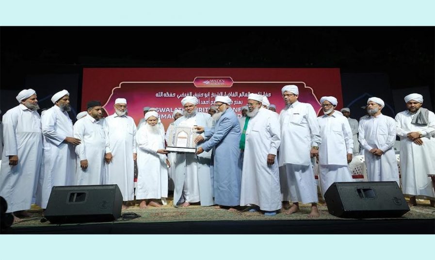 സമസ്ത പ്രസിഡന്റ് ഇ സുലൈമാന് മുസ്ലിയാരും മഅ്ദിന് ചെയര്മാന് സയ്യിദ് ഇബ്റാഹീമുല് ഖലീല് അല്ബുഖാരിയും ചേര്ന്ന് പുരസ്കാരം കൈമാറി.