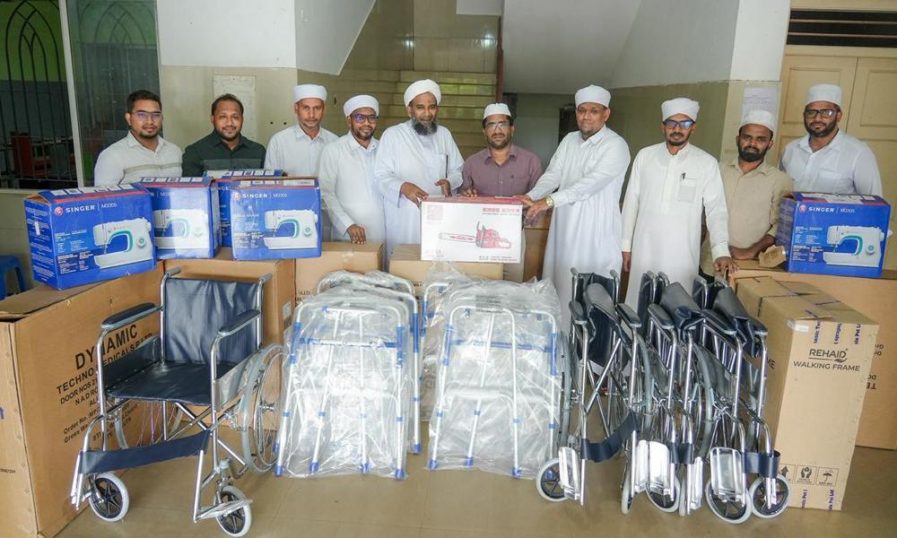 സമ്മേളനത്തില് വിതരണം ചെയ്യാനുള്ള തൊഴില്- സാന്ത്വന ഉപകരണങ്ങള് സമസ്ത ജില്ലാ സെക്രട്ടറി പി ഇബ്റാഹീം ബാഖവി എസ് വൈ എസ് സോണ് നേതാക്കള്ക്ക് കൈമാറി.