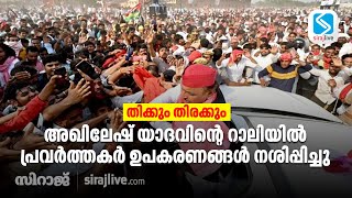 തിക്കും തിരക്കും; അഖിലേഷ് യാദവിന്റെ റാലിയില് പ്രവര്ത്തകര് ഉപകരണങ്ങള് നശിപ്പിച്ചു