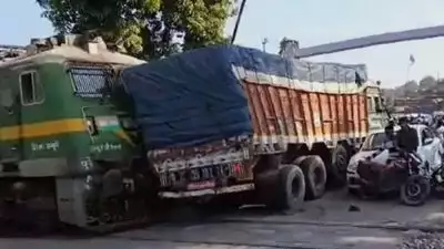 റെയിൽവേ ക്രോസിൽ ട്രെയിൻ ട്രക്കുമായി കൂട്ടിയിടിച്ച് അപകടം; ഒഴിവായത് വൻദുരന്തം