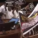 'കാട്ടുകള്ളന്മാര്, അമ്പലം വിഴുങ്ങികള്', ബാനറുമായി പ്രതിപക്ഷം; സ്വര്ണപ്പാളിയില് ചുട്ടുപഴുത്ത് നിയമസഭ