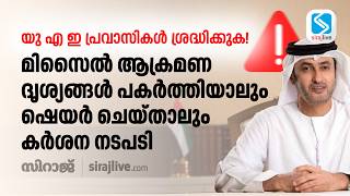 യു എ ഇ പ്രവാസികൾ ശ്രദ്ധിക്കുക! മിസൈൽ ആക്രമണ ദൃശ്യങ്ങൾ പകർത്തിയാലും ഷെയർ ചെയ്താലും കർശന നടപടി