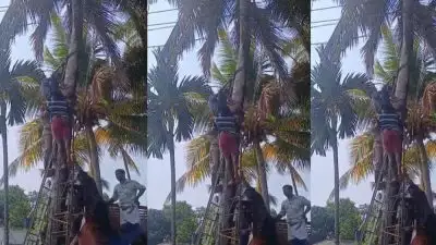 പച്ചോല വൈദ്യുതി ലൈനിൽ തട്ടി അപകടം; യുവാവ് അത്ഭുതകരമായി രക്ഷപ്പെട്ടു