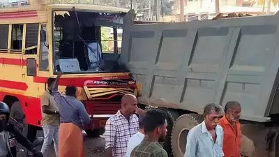കെ എസ് ആര് ടി സി ബസ് ലോറിയിലേക്ക് ഇടിച്ചുകയറി അപകടം; 44പേർക്ക് പരിക്ക്, നാലുപേർ ഗുരുതരാവസ്ഥയിൽ