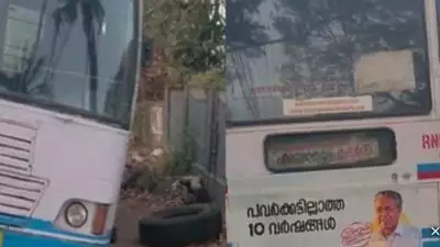 നിറയെ യാത്രക്കാരുമായി പോയ കെ എസ് ആര് ടി സി ബസിന്റെ ടയര് ഊരിച്ചെറിച്ചു