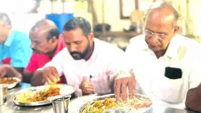 സദ്യക്ക് രാഷ്ട്രീയമില്ല; മനുവും കരിമ്പിൽ കൃഷ്ണനും ഒരേ ബെഞ്ചിൽ