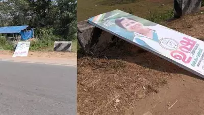 മാനന്തവാടിയിൽ യുഡിഎഫ് സ്ഥാനാർത്ഥി ഉഷാ വിജയന്റെ ഫ്ലക്സ് ബോർഡുകൾ ഉപേക്ഷിക്കപ്പെട്ട നിലയിൽ