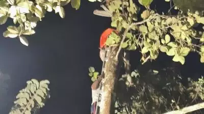 മരത്തില് കുടുങ്ങിയ തൊഴിലാളിയെ അഗ്നിരക്ഷാസേന രക്ഷപ്പെടുത്തി