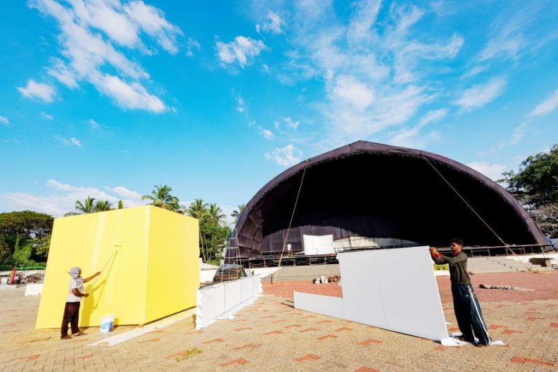 കേരളയാത്ര സമാപന സംഗമത്തിനായി പുത്തരിക്കണ്ടം മൈതാനിയിലൊരുങ്ങുന്ന പന്തല്