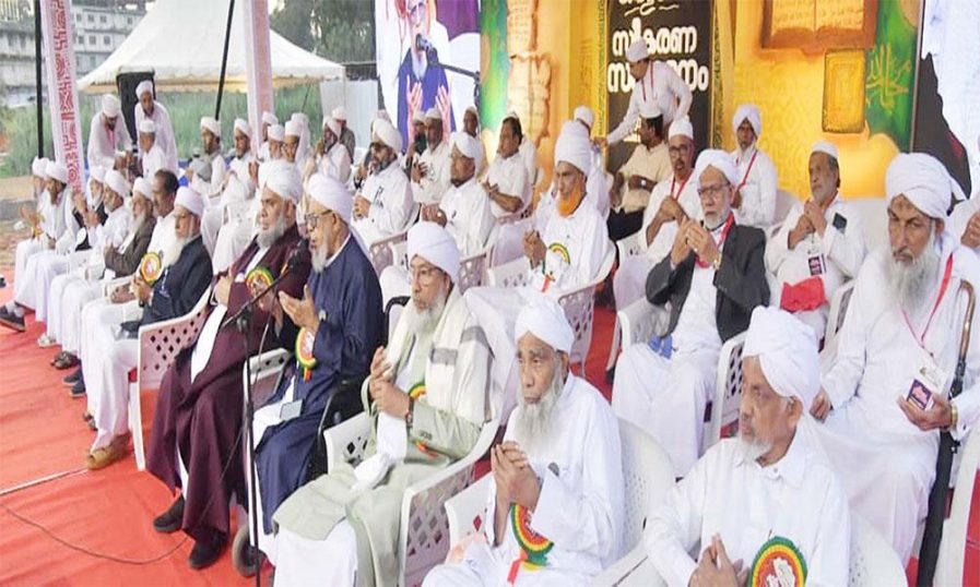 കേരളയാത്രക്ക് കൽപ്പറ്റയിൽ നൽകിയ സ്വീകരണ സമ്മേളനത്തിൽ സയ്യിദ് അലി ബാഫഖി തങ്ങൾ പ്രാർഥന നിർവഹിക്കുന്നു