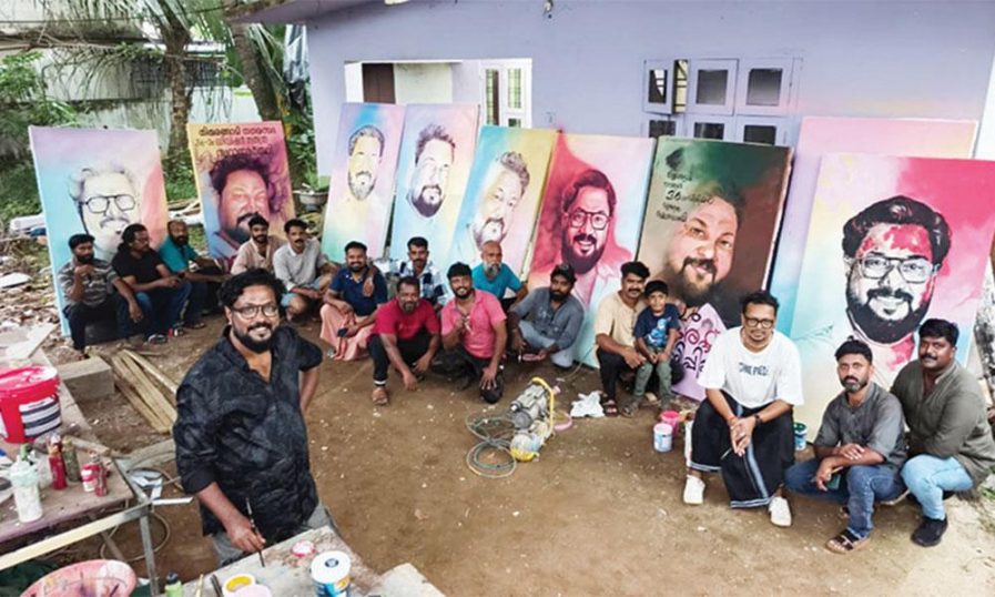 പാലത്തിങ്ങലിലെ ചിത്രവര കേന്ദ്രത്തിൽ ഒത്തുചേർന്നാണ് ശിഷ്യർ സുരേഷിന്റെ വിവിധ ഭാവത്തിലുള്ള ചിത്രം വരച്ചത്.