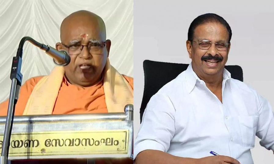കെ സുധാകരനെ മാറ്റിയത് സുധാകരന് ഉള്പ്പെടുന്ന സമുദായത്തിനെതിരായ നീക്കം: ശിവഗിരി മഠാധിപതി സ്വാമി സച്ചിദാനന്ദ
