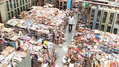 ഓരോ പുസ്തകവും എവിടെയാണെന്ന് ഗൗഡക്ക് ഗ്രാഹ്യമാണ്. അലമാരകളിൽ സ്ഥലമില്ലാത്തതിനാൽ പുസ്തകങ്ങൾ തറനിറയെ അട്ടിവെച്ചിരിക്കുകയാണ്.