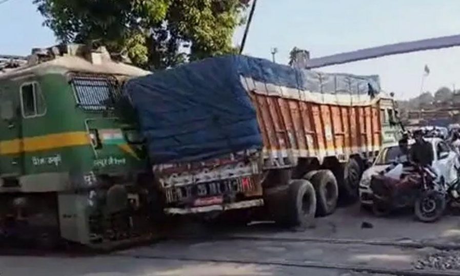 റെയിൽവേ ക്രോസിൽ ട്രെയിൻ ട്രക്കുമായി കൂട്ടിയിടിച്ച് അപകടം; ഒഴിവായത് വൻദുരന്തം
