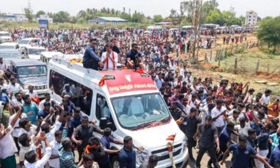 പ്രചാരണത്തിന്റെ ഭാഗമായി മഹാദാനപുരത്ത് എത്തിയ വിജയിയെ കാണാന് വലിയ ജനക്കൂട്ടമാണ് എത്തിയതും ആവേശം പ്രകടമാക്കിയതും. നിലവിലെ സര്ക്കാരിനെ വിമര്ശിച്ച അദ്ദേഹം, തിരഞ്ഞെടുപ്പിനോടനുബന്ധിച്ച് ടി വി കെ അവതരിപ്പിക്കുന്ന വാഗ്ദാനങ്ങളും ജനങ്ങള്ക്ക് മുന്നില് വിശദീകരിച്ചു.
