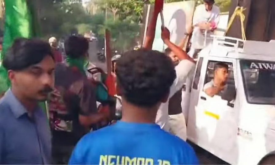 മലപ്പുറത്ത് കൊട്ടിക്കലാശത്തിനിടെ മരം മുറിക്കുന്ന വാളും യന്ത്രവും കൊണ്ടുവന്ന് യുഡിഎഫ് പ്രവര്ത്തകര്; പരാതി നല്കി