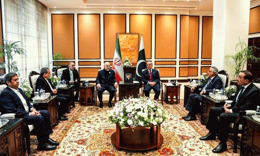 ഇറാനിയൻ കൺസൾട്ടേറ്റീവ് അസംബ്ലി സ്പീക്കർ മുഹമ്മദ് ബാഗർ ഗാലിബാഫിന്റെ നേതൃത്വത്തിലുള്ള ഇറാനിയൻ പാർലമെന്ററി പ്രതിനിധി സംഘം ഇസ്ലാമാബാദിൽ പാകിസ്ഥാൻ പ്രധാനമന്ത്രി ഷെഹ്ബാസ് ഷെരീഫുമായി കൂടിക്കാഴ്ച നടത്തുന്നു