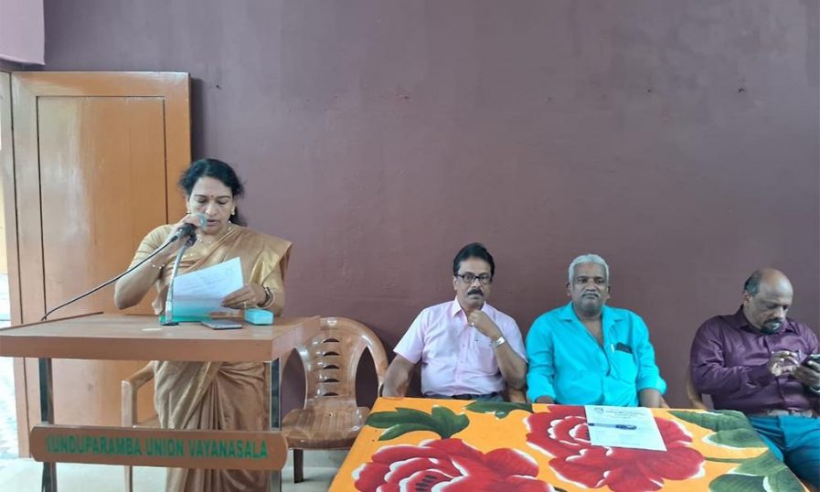 വായനശാലാ പ്രസിഡന്റ് എം സി സുദേഷ്കുമാര് അധ്യക്ഷത വഹിച്ചു. സെക്രട്ടറി ടി പ്രകാശന് സ്വാഗതവും ജോ. സെക്രട്ടറി എന് പി ഗോപാലകൃഷ്ണന് നന്ദിയും പറഞ്ഞു. പ്രാദേശിക ഗായകരുടെ ഗാനമേളയും ഉണ്ടായിരുന്നു.
