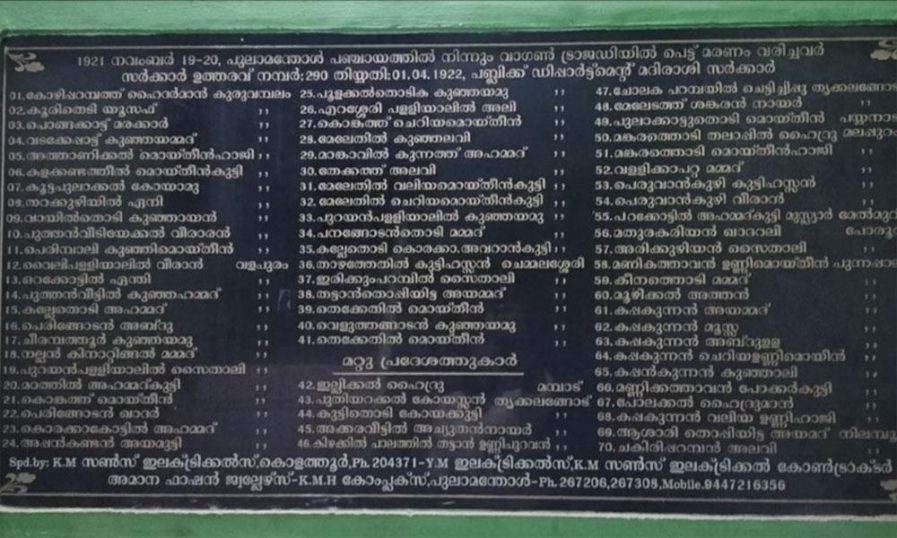 വാഗൺ കൂട്ടക്കൊല; രക്തസാക്ഷികളുടെ കുടുംബങ്ങൾ ഇന്ന് കുരുവമ്പലത്ത് സംഗമിക്കും